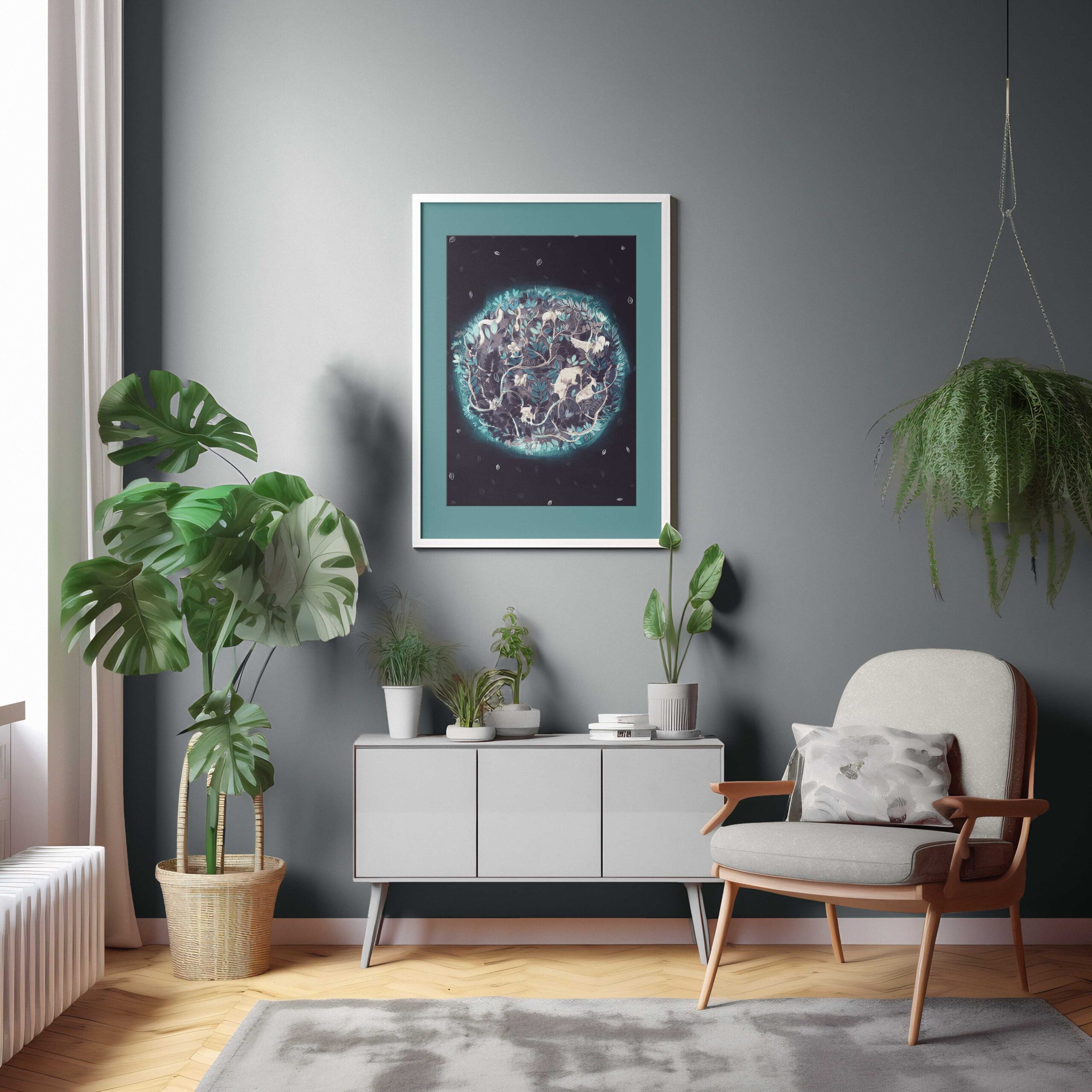 Produkt jest sprzedawany bez ramki widocznej na zdjęciu. Plakat jest odręcznie podpisany w prawym, dolnym rogu.