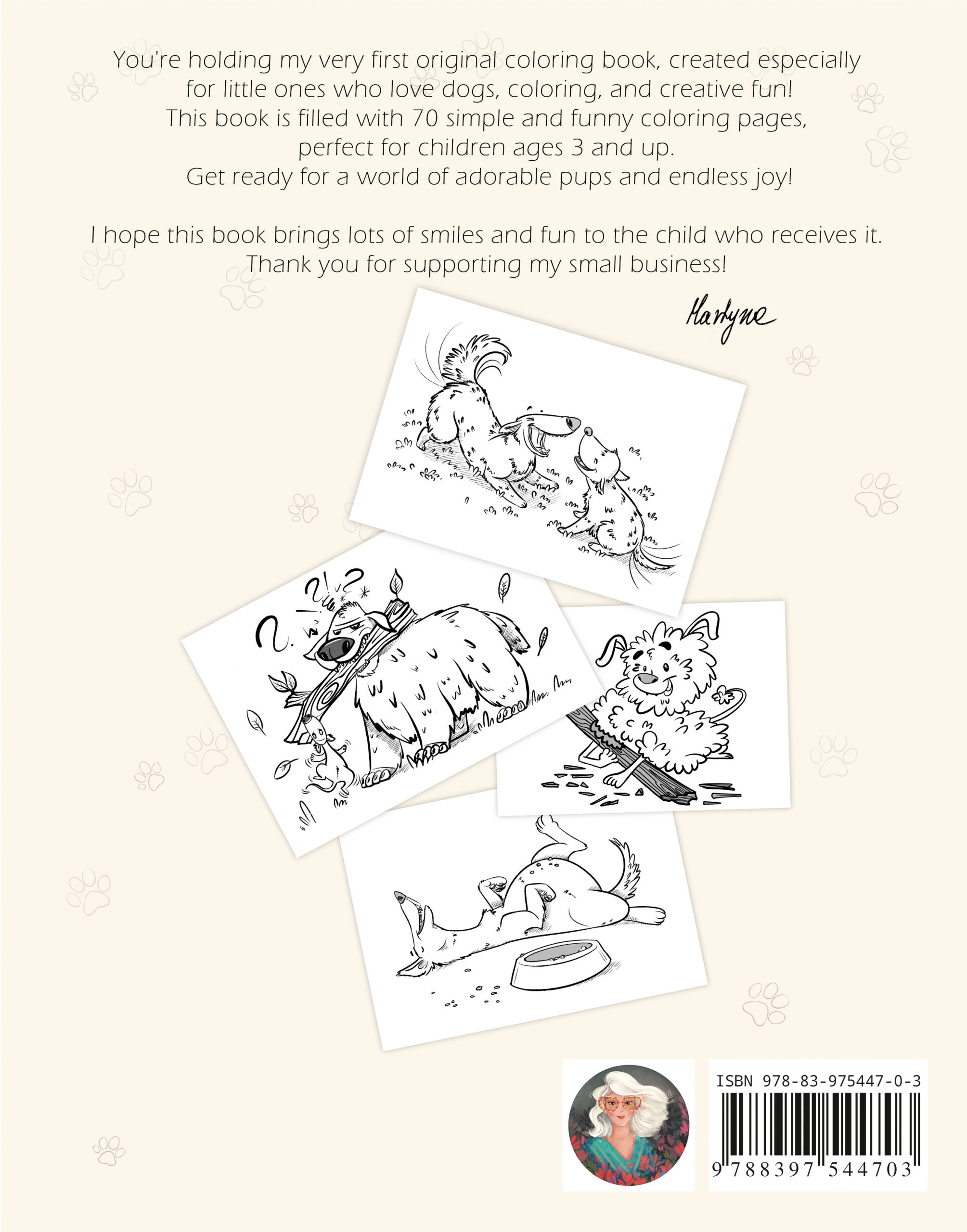 Stworzyłam tę kolorowankę z myślą o najmłodszych miłośnikach piesków, kolorowania i kreatywnej zabawy. Zawiera zabawne, proste i urocze ilustracje z pieskami w roli głównej – idealne dla najmłodszych dzieci.