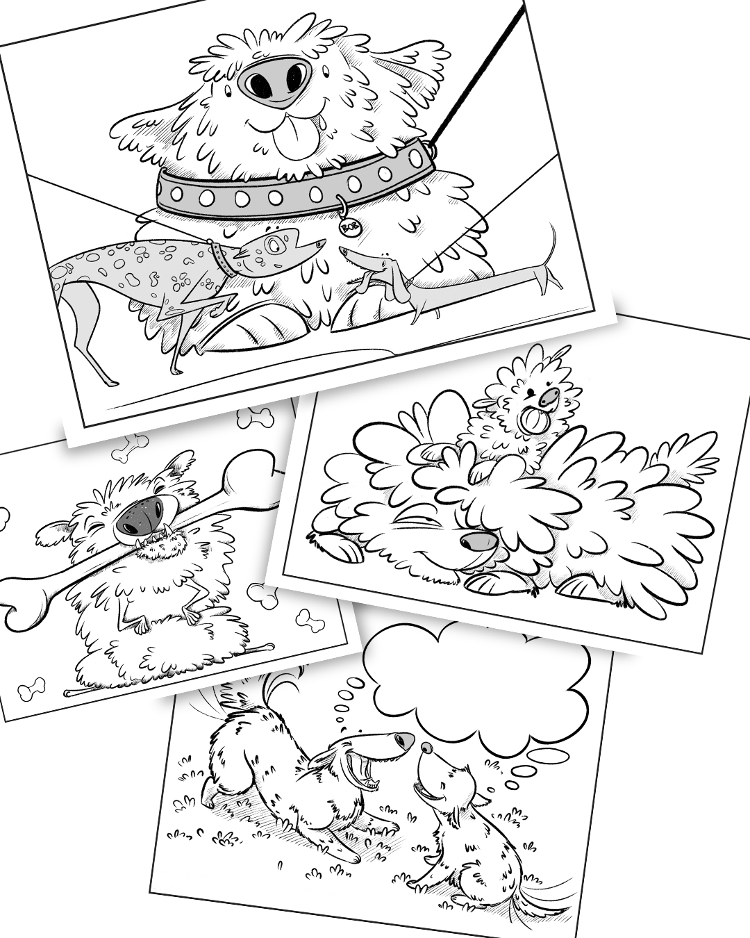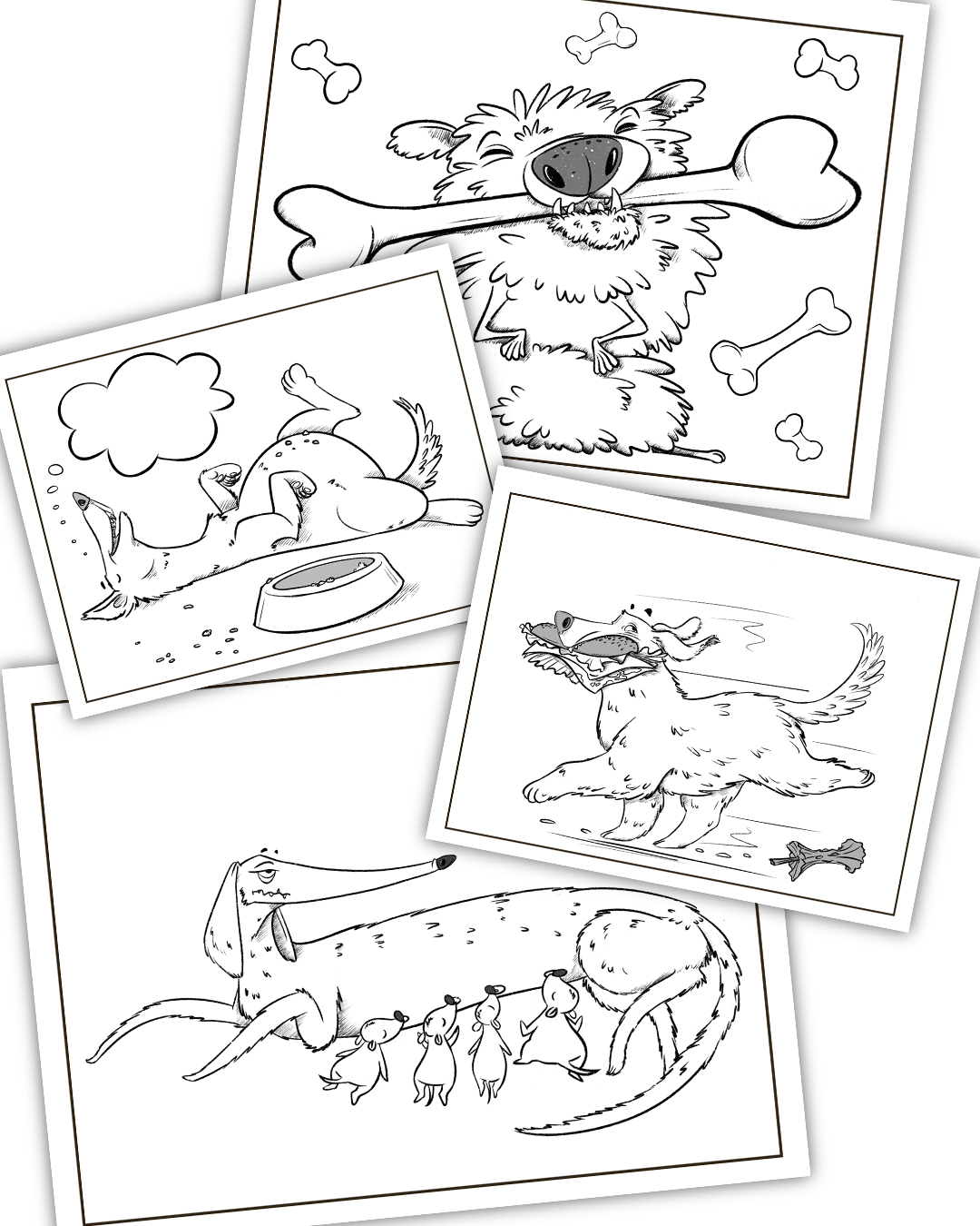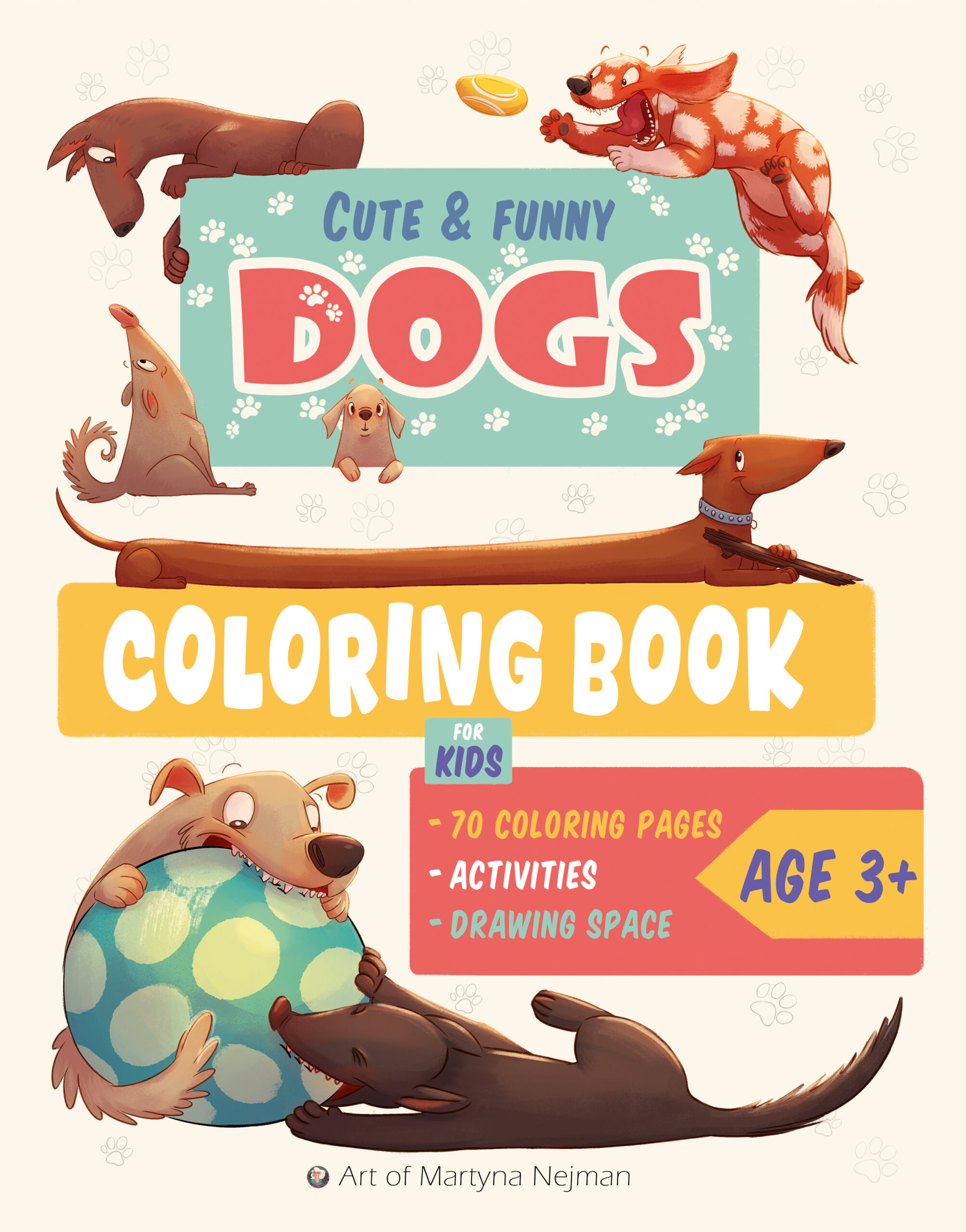 Kolorowanka „Cute & Funny Dogs” – PDF do samodzielnego wydruku – Idealny prezent dla dzieci od 3 roku życia! 🐶🎨